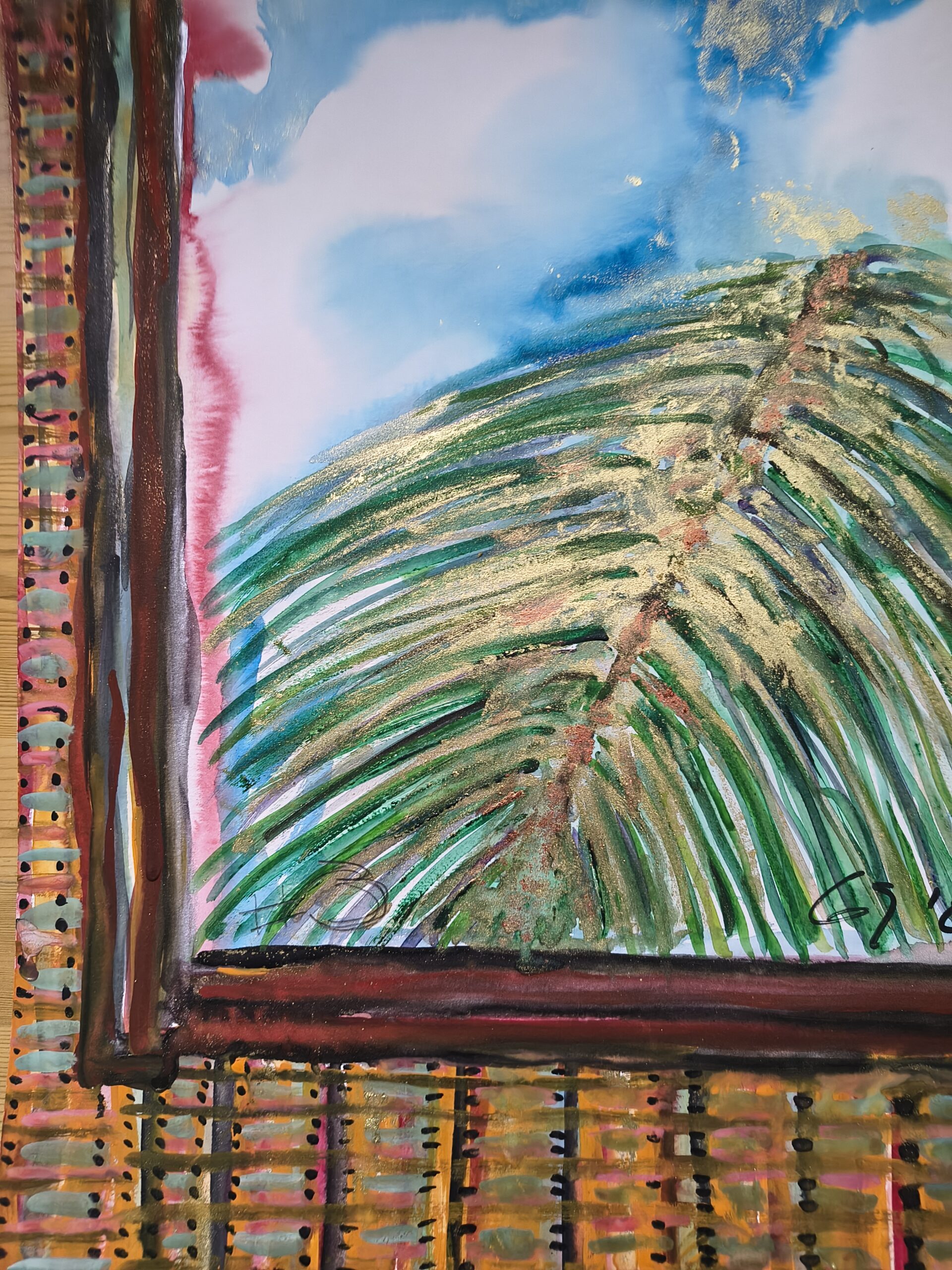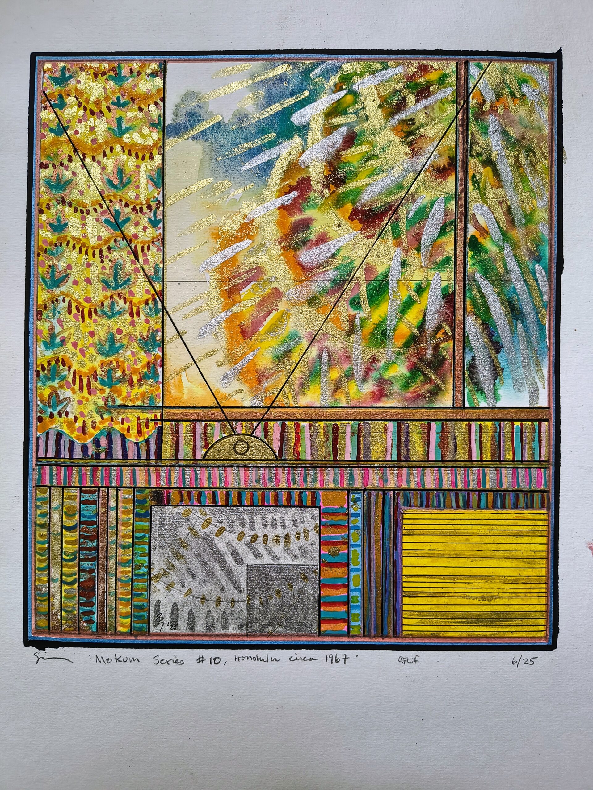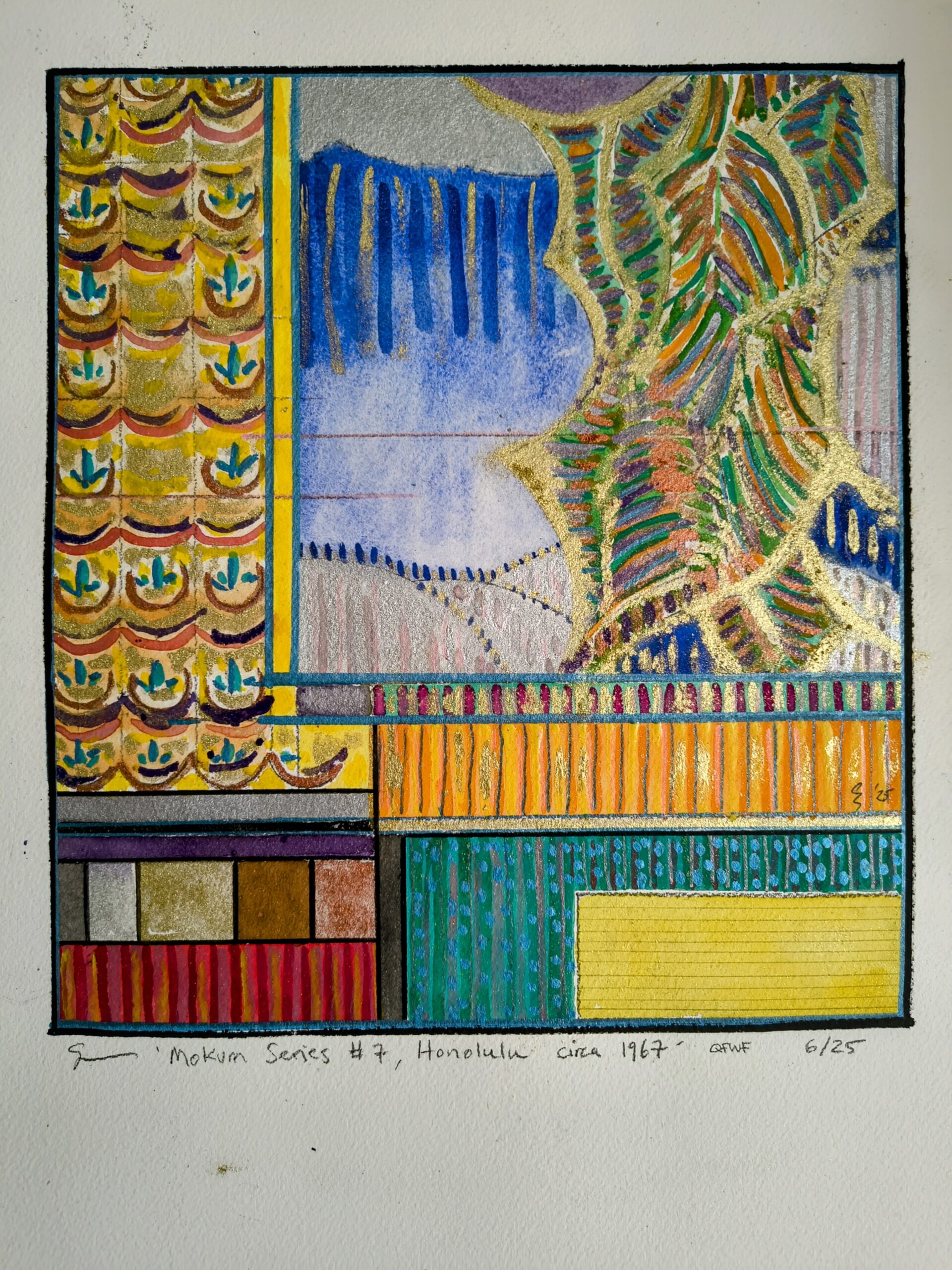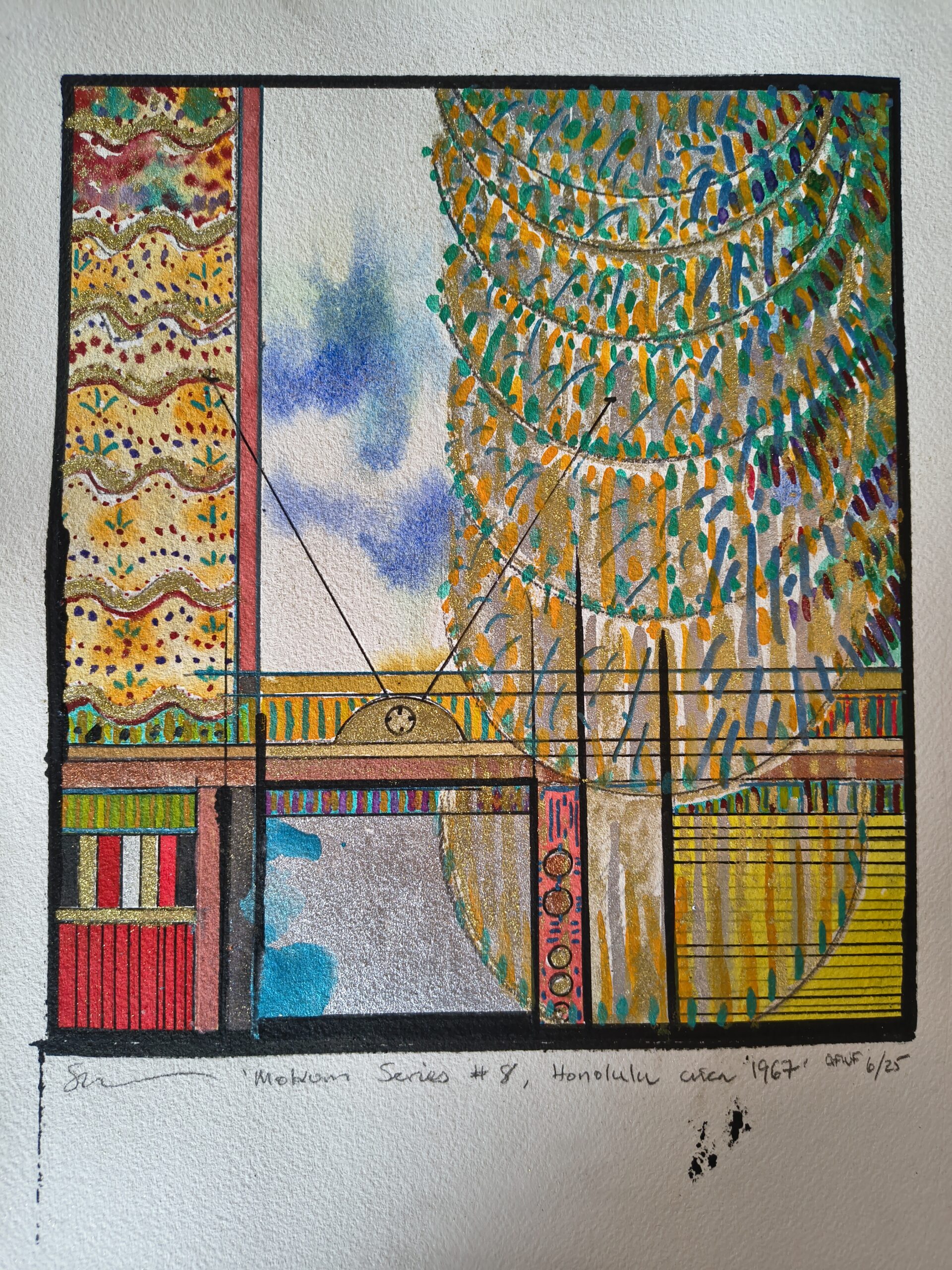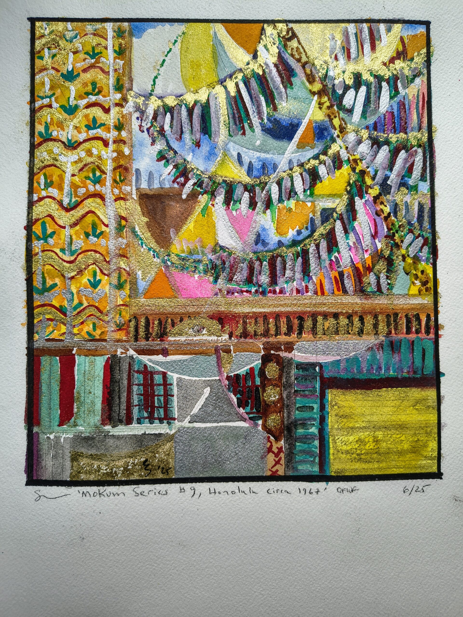 I’d mentioned about wanting to do a series on places. I also remembered I had some inexpensive watercolor paper, which fit in with my idea of wanting to quickly and expressively capture my first memory, of a window in a dark room, in Honolulu. The series is entitled Mokum, a reference to my current life, and also the word itself, (Yiddish) meaning a place….. A good and safe place.”